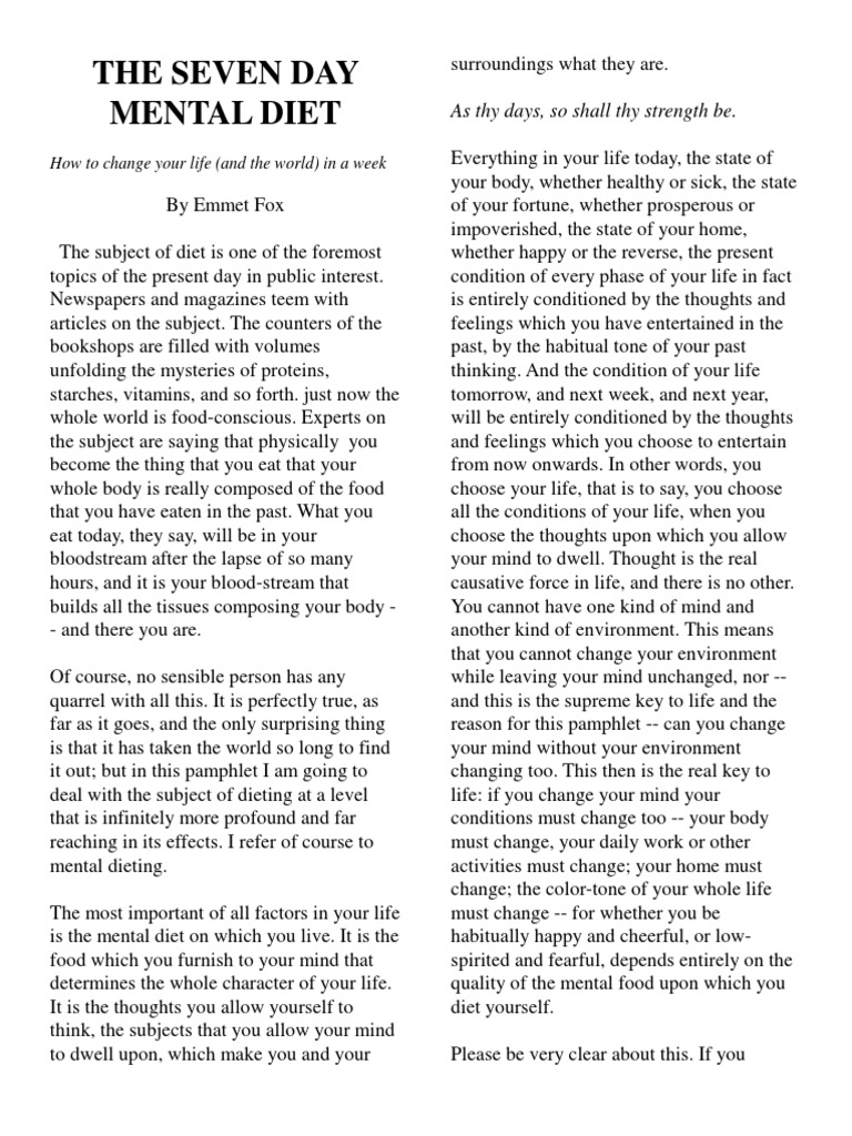 7 Day Mental Diet Free Pdf - This blog deals with a holistic approach to.