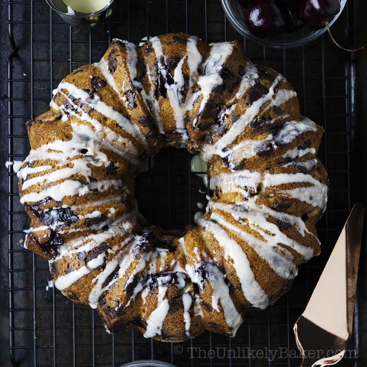 Dark Chocolate Cherry Bundt Cake Dark Chocolate Cherry Bundt Cake / Scoop out the sponge interior of the cake.