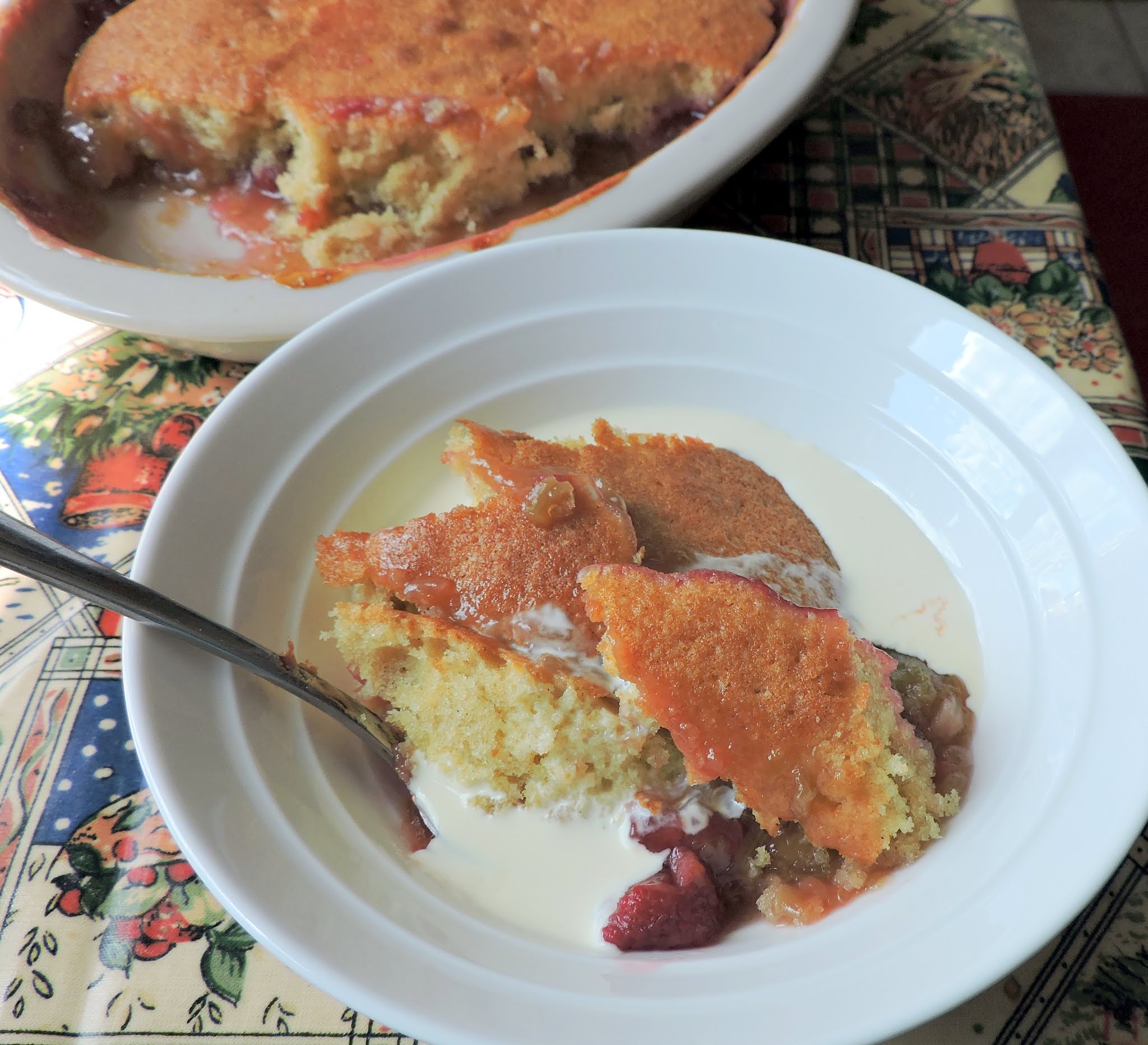 Pear Eve's Pudding / The pudding is cooked when the sponge is golden brown.