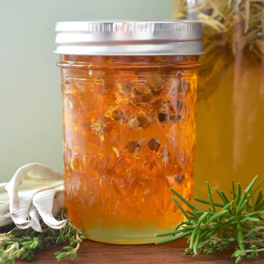 Thyme Infused Honey Thyme Infused Honey : Infused in honey they are soothing for sore throat and cough.